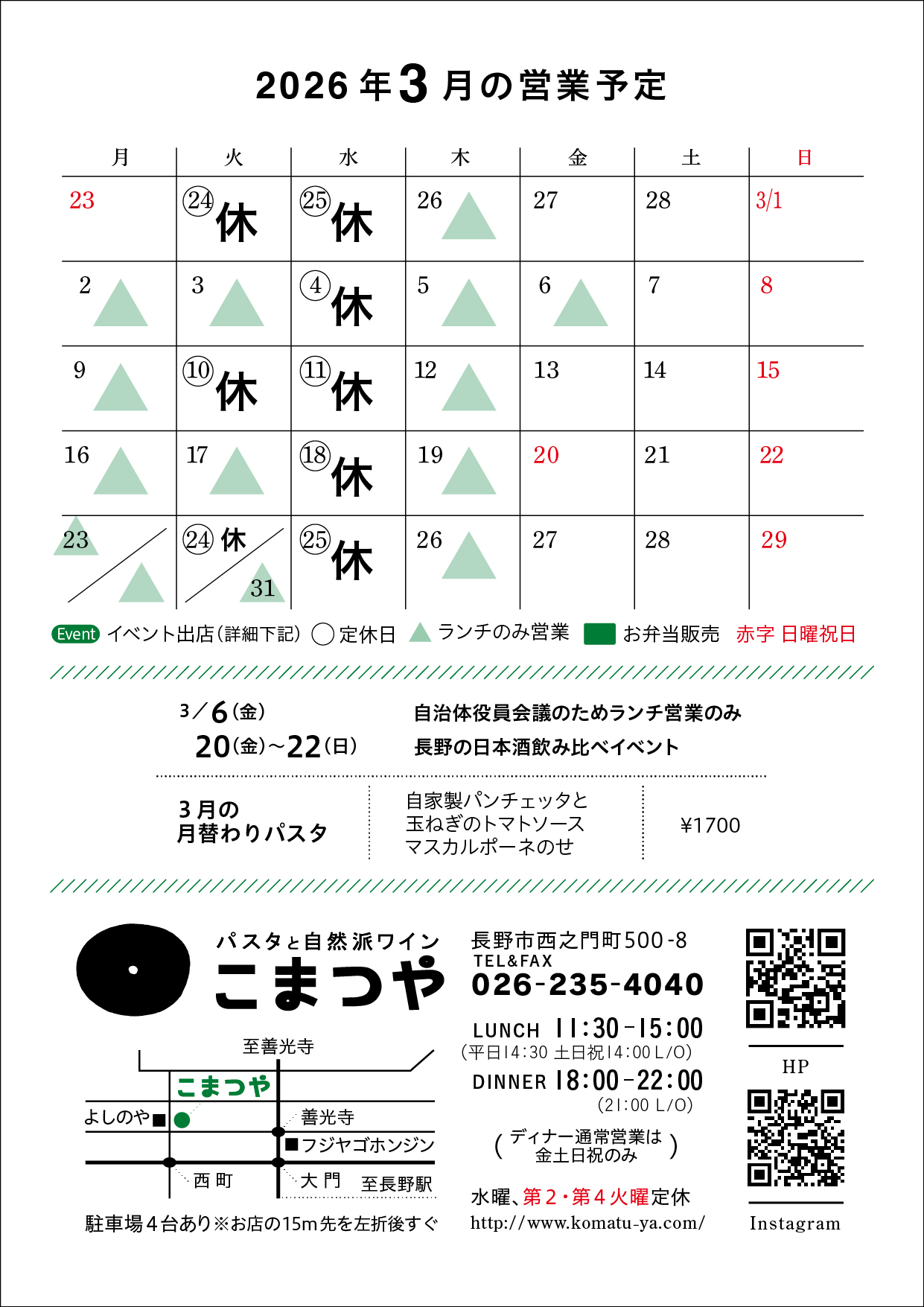 【3月の営業カレンダー】